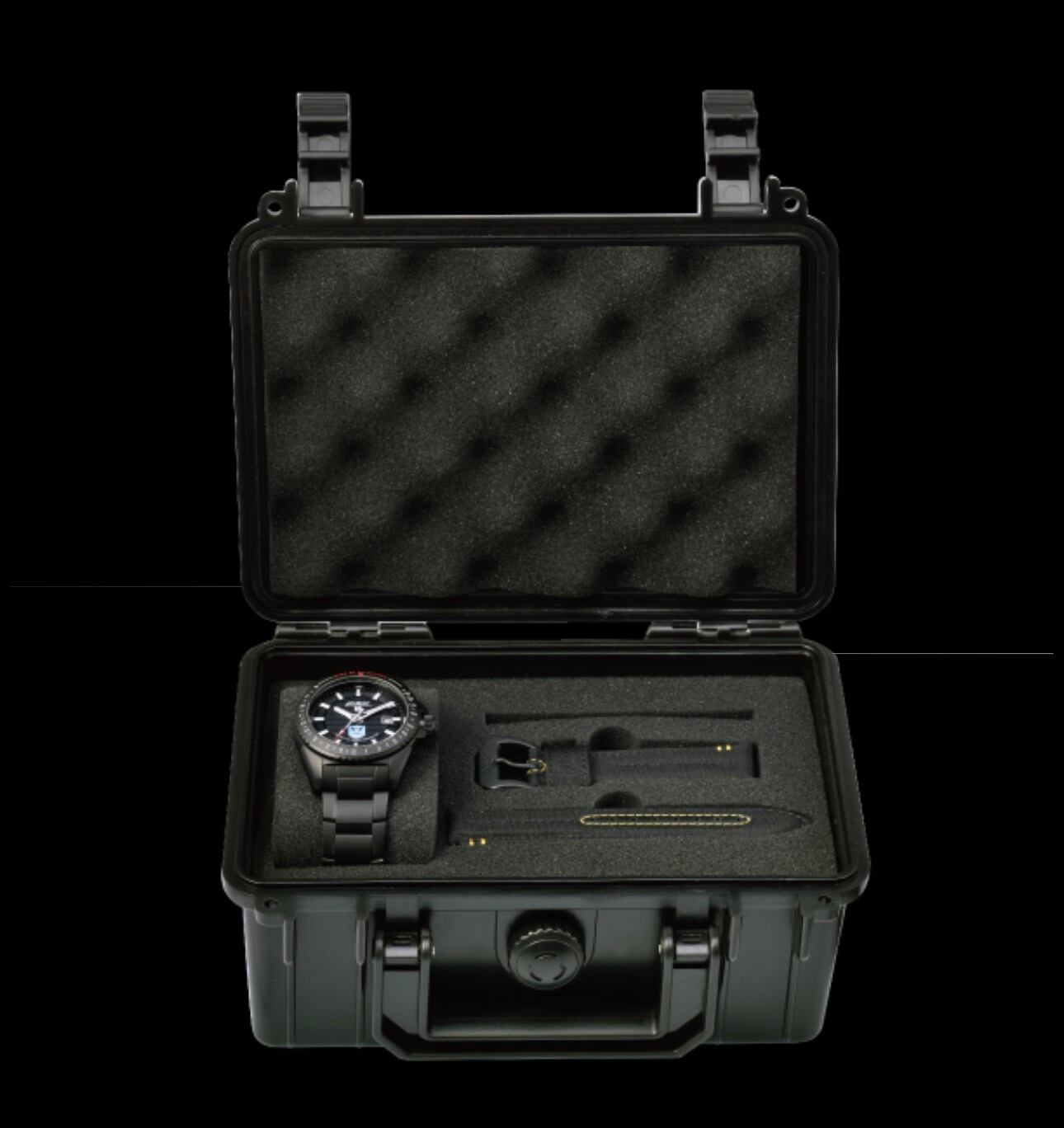 救難ヘリ「ブラックホーク」をイメージした外装に、文字盤には航空救難団の部隊標識がデザインされています。